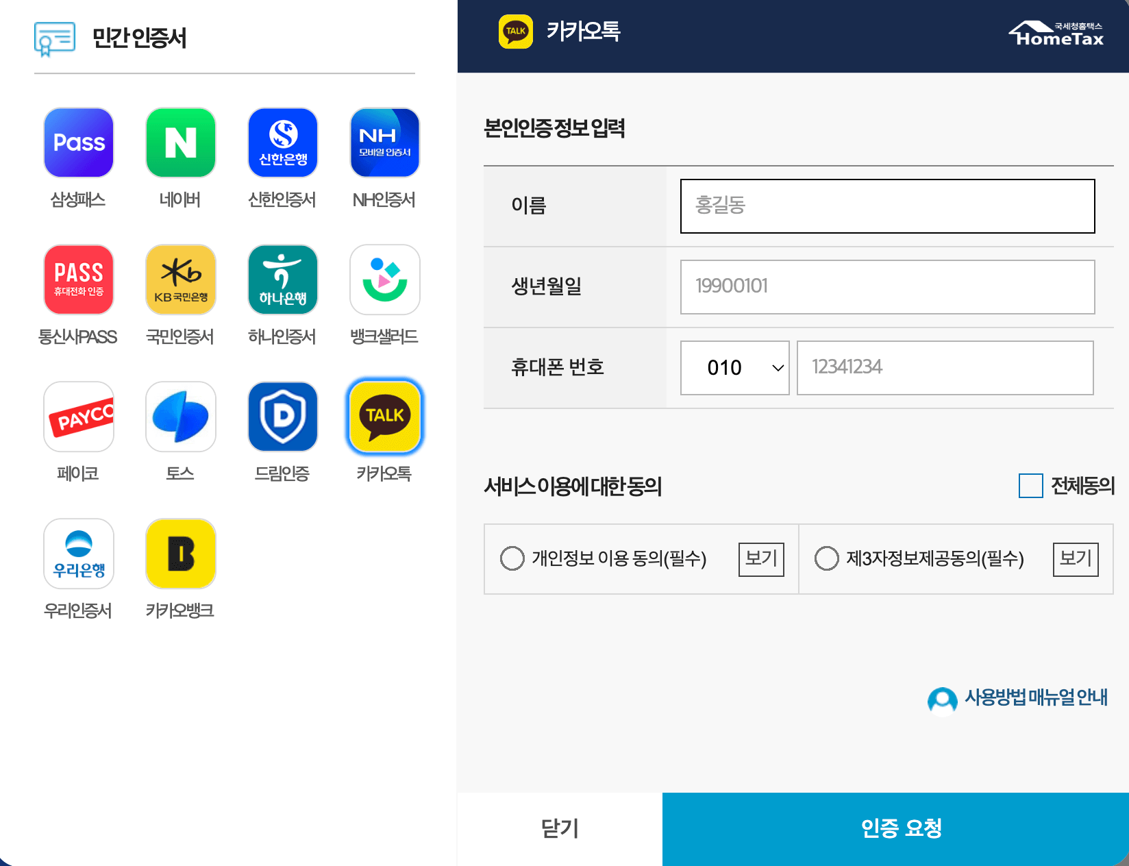 요즘은 간편 인증을 많이 합니다. 저는 카카오톡으로 간연인증 절차를 했습니다.