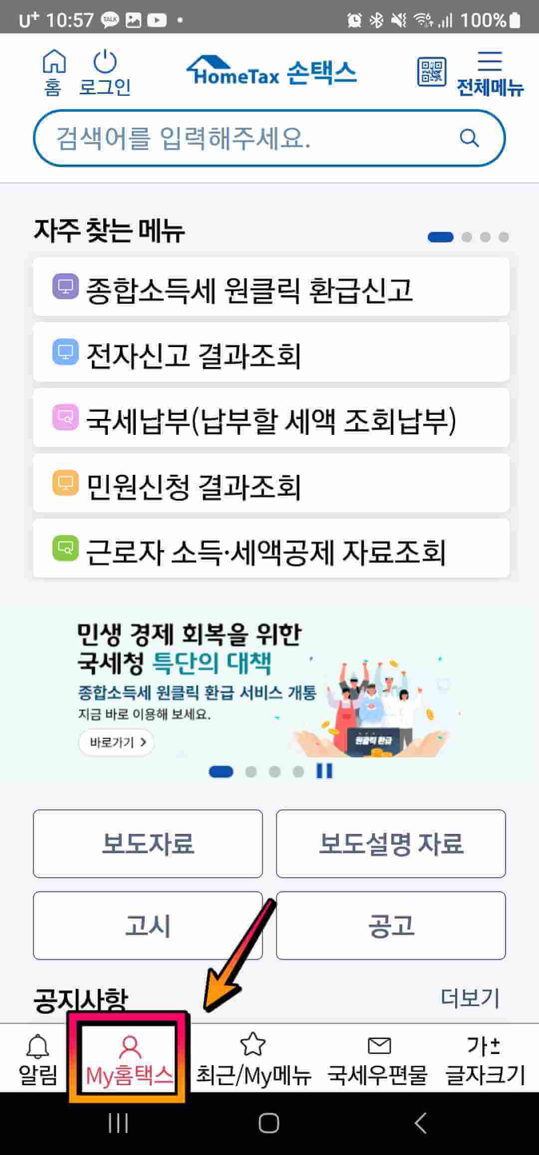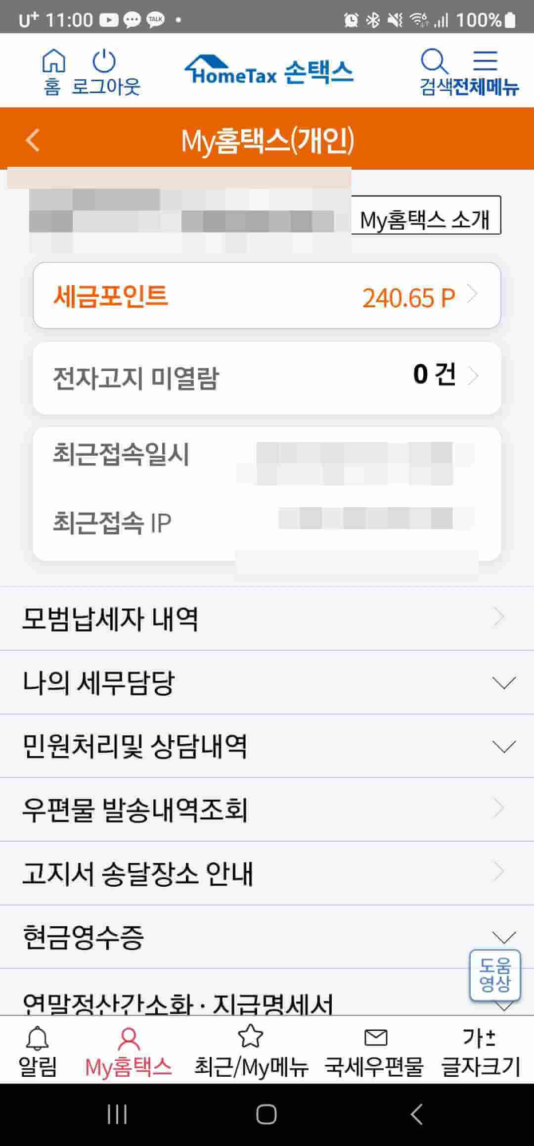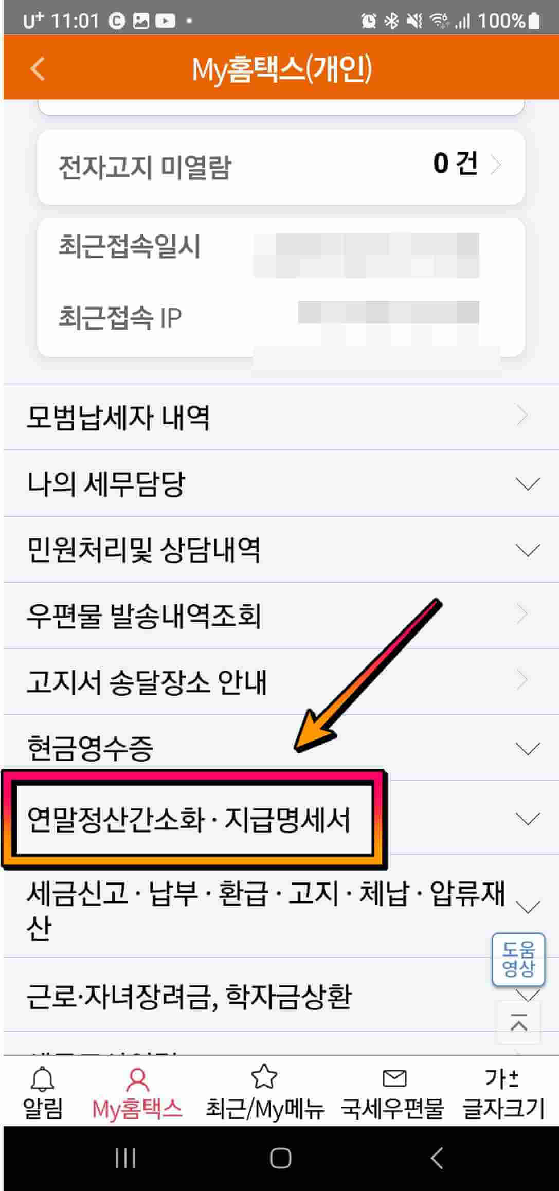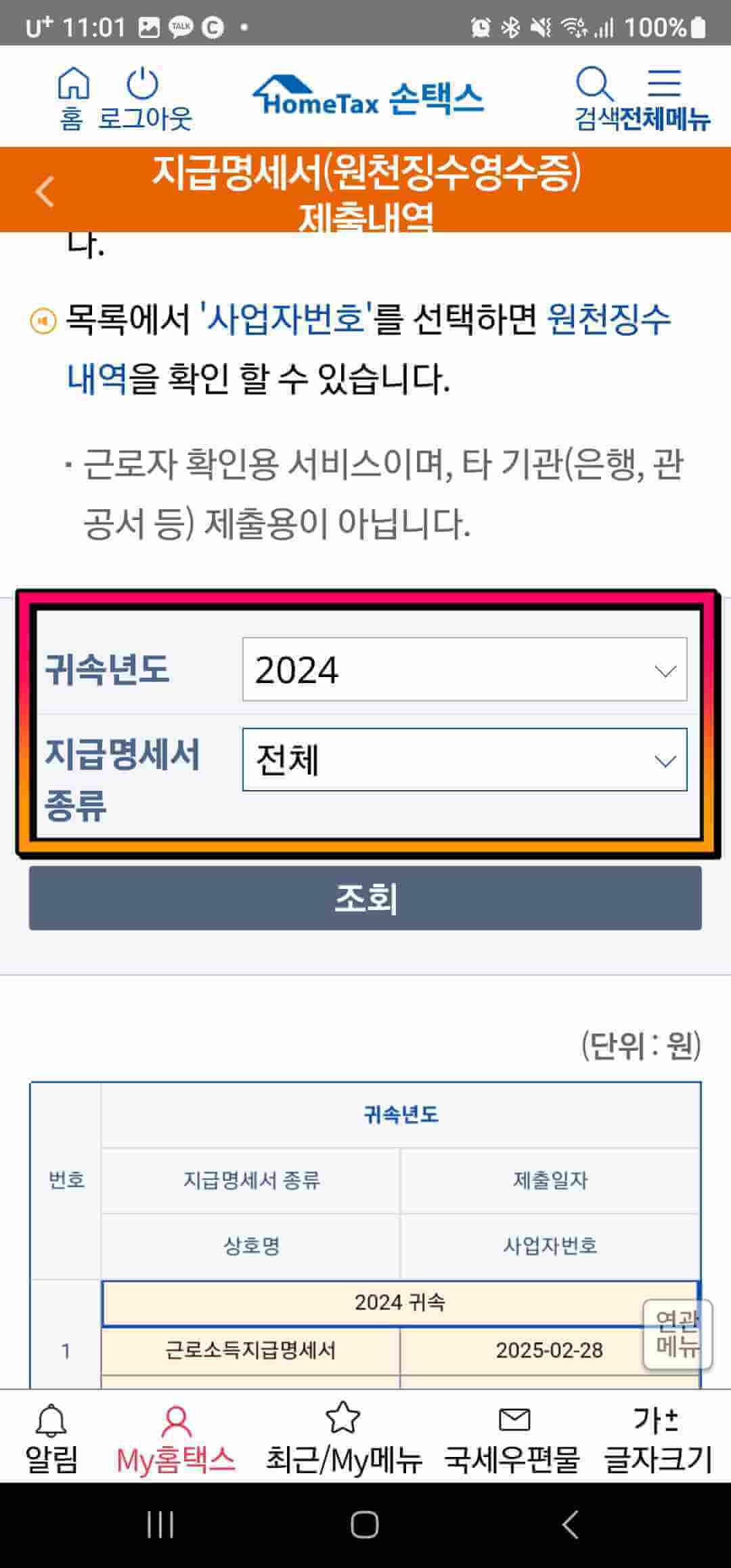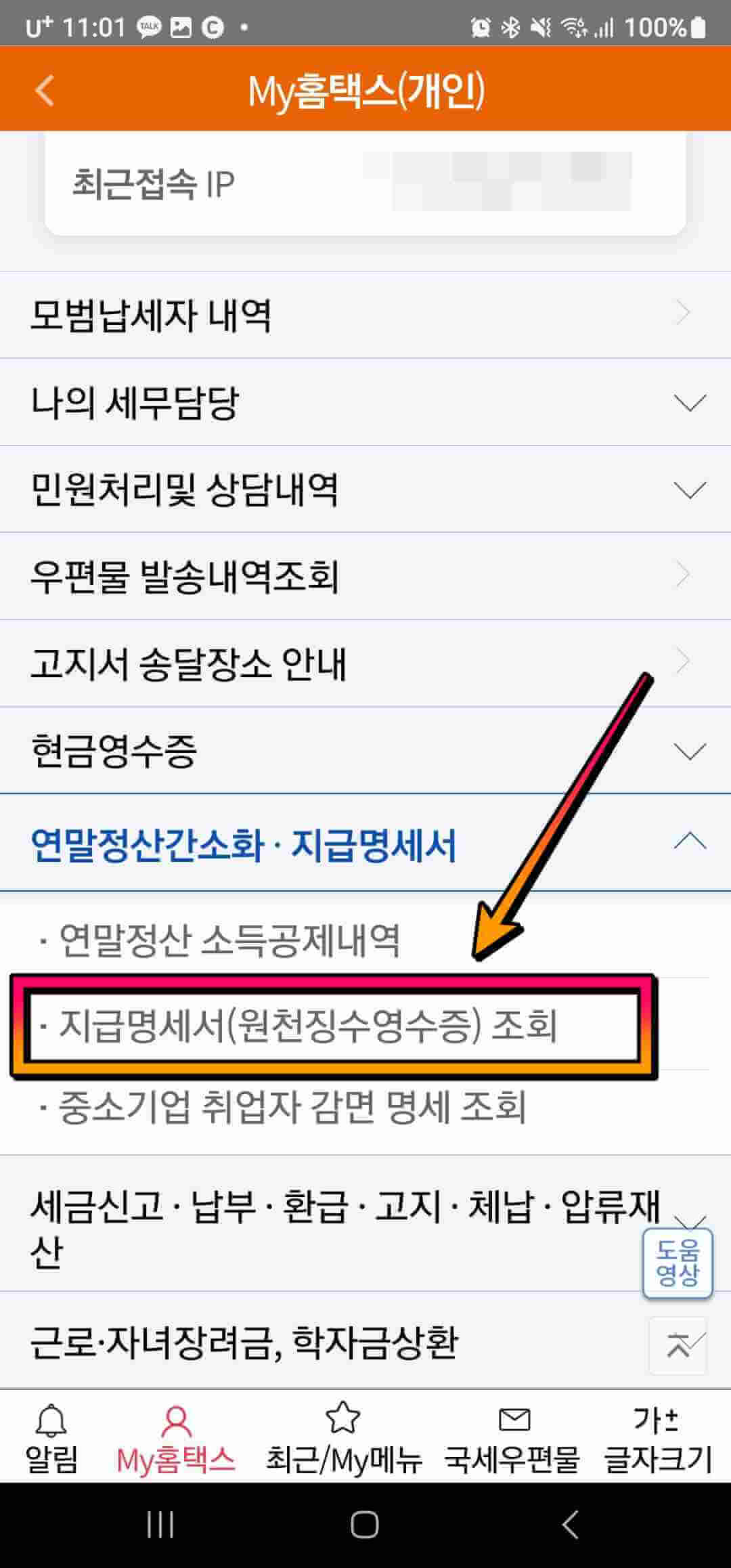 원천징수영수증 인터넷 발급 방법 : 모바일 버전