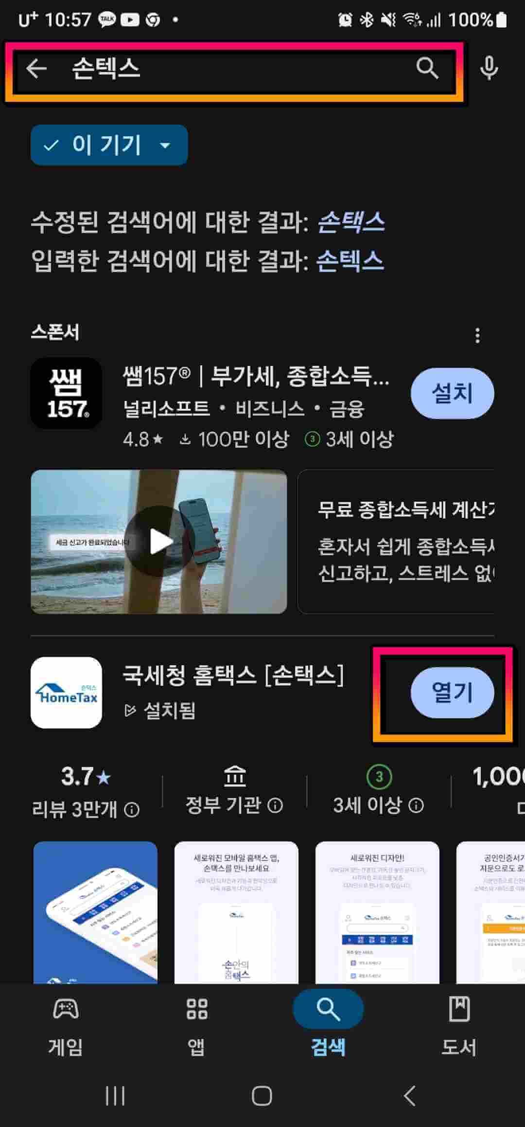 먼저 핸드폰에서 손텍스를 다운로드 하고 열기를 눌러 줍니다.